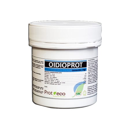 OIDIOPROT es una mezcla de nutrientes y factores para el crecimiento de la microflora procedentes del Extracto de Microorganismos específicos que impiden el desarrollo del hongo. El producto en polvo, no es tóxico y carece de residuos.