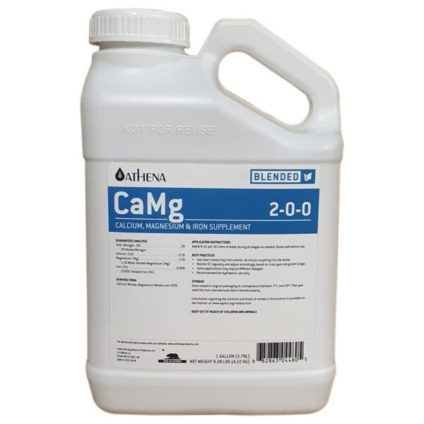 Athena CaMg está diseñado para complementar cualquiera de las fórmulas líquidas de Athena de 2 partes. Algunos cultivos y condiciones de crecimiento pueden requerir dosis más altas de calcio, magnesio, hierro y nitrógeno durante las fases de crecimiento y desarrollo intensos. Este producto corrige eficazmente estas deficiencias comunes sin alterar el equilibrio elemental general. Athena CaMg es particularmente útil en sistemas que utilizan agua de ósmosis inversa (RO) y plantas cultivadas en medios inertes, como coco y lana de roca. Aunque las otras fórmulas de Athena de 2 partes ya proporcionan niveles suficientes de calcio y magnesio, algunos cultivadores necesitan encontrar suplementos útiles en condiciones exigentes.