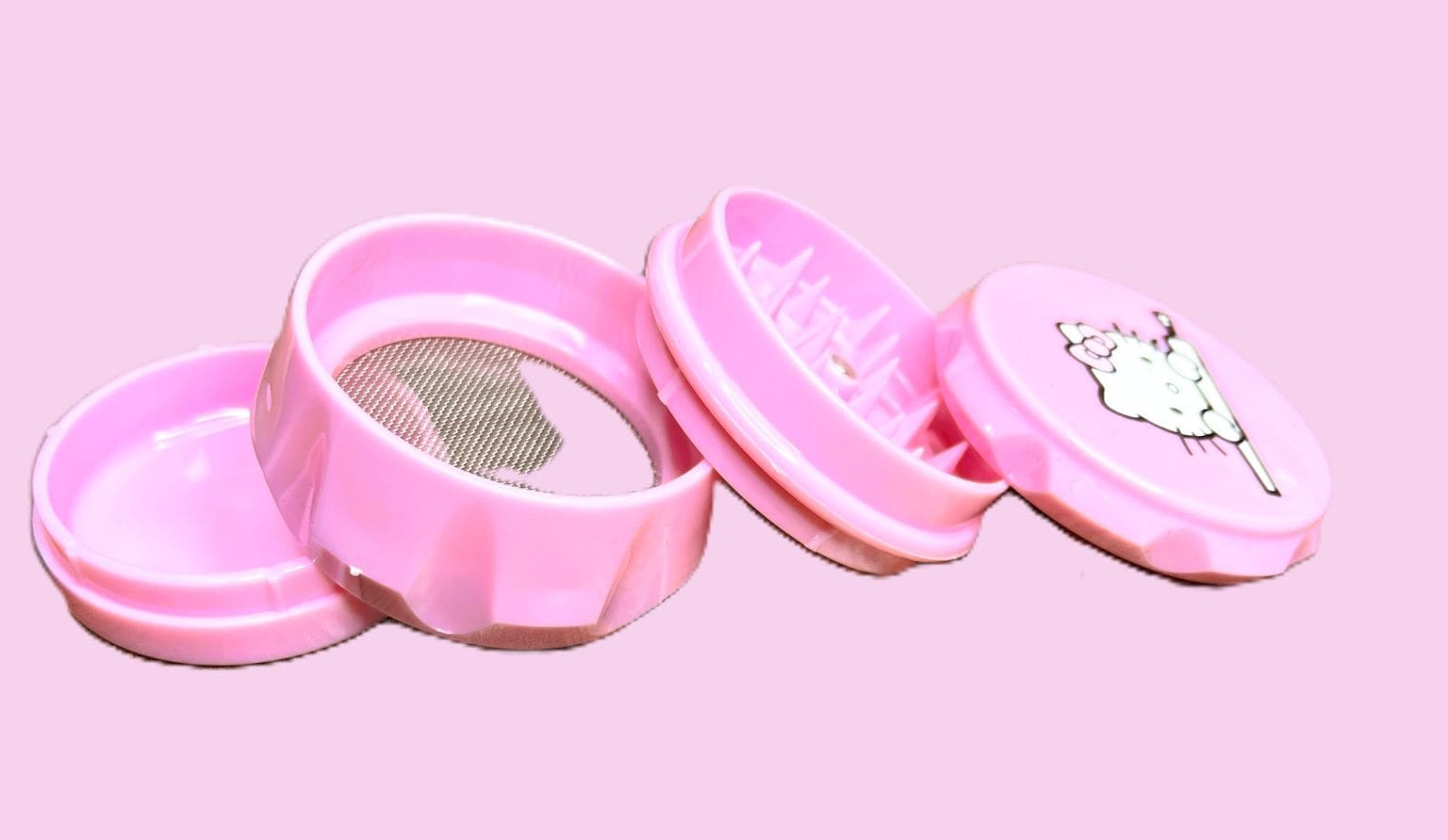 GRINDER 5,5 CM HECHOS EN ACRÍLICO COLOR ROSA KITTY, VARIOS DISEÑOS.