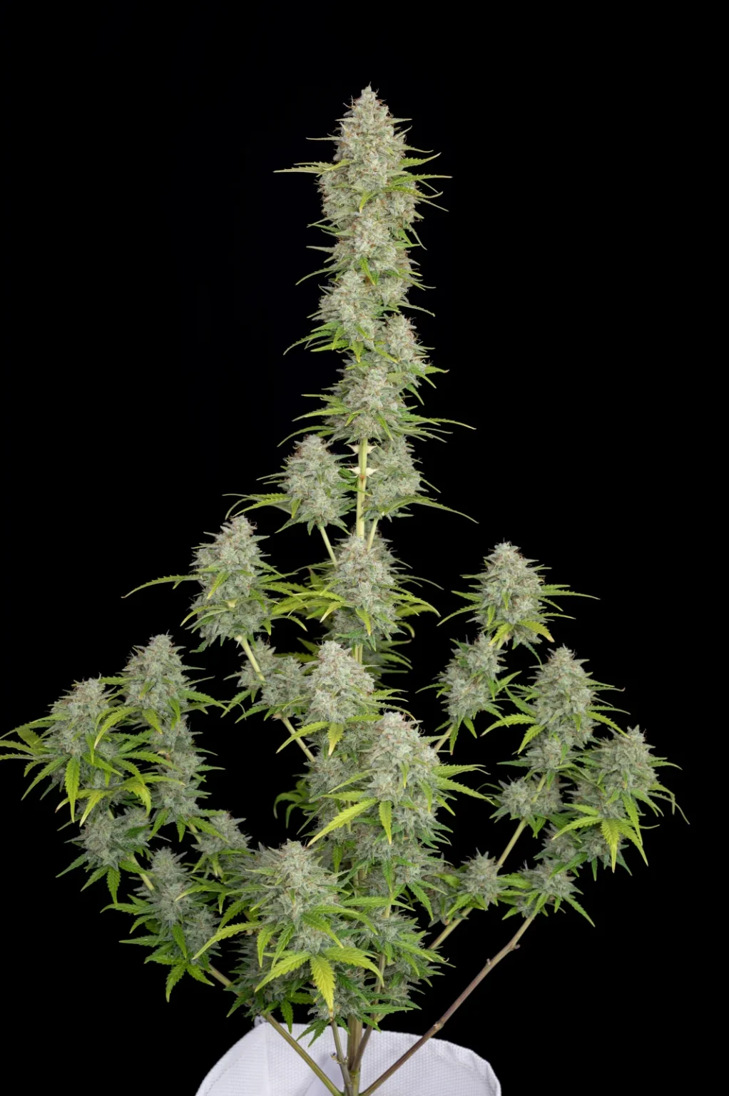 Una de nuestras híbridas más altas que puede crecer entre 110-150 cm, por lo que es la más adecuada para aquellos con mucho espacio de cultivo. Gracias a su herencia sativa, espera que esta dama crezca rápidamente con un gran espacio internodal y una apariencia amplia y espesa. Se pueden esperar rendimientos de 500-650 g/m² y recomendamos añadir algún soporte en la etapa vegetativa para que aguante mejor el período de floración. Una increíble productora de flores extremadamente resinosas, que crece bien en todos los climas, especialmente en California, el Mediterráneo y América del Sur. Tendrá cogollos grandes, con cantidades prolíficas de resina en las hojas circundantes, que harán que los fabricantes de hachís se lamen los labios con anticipación.