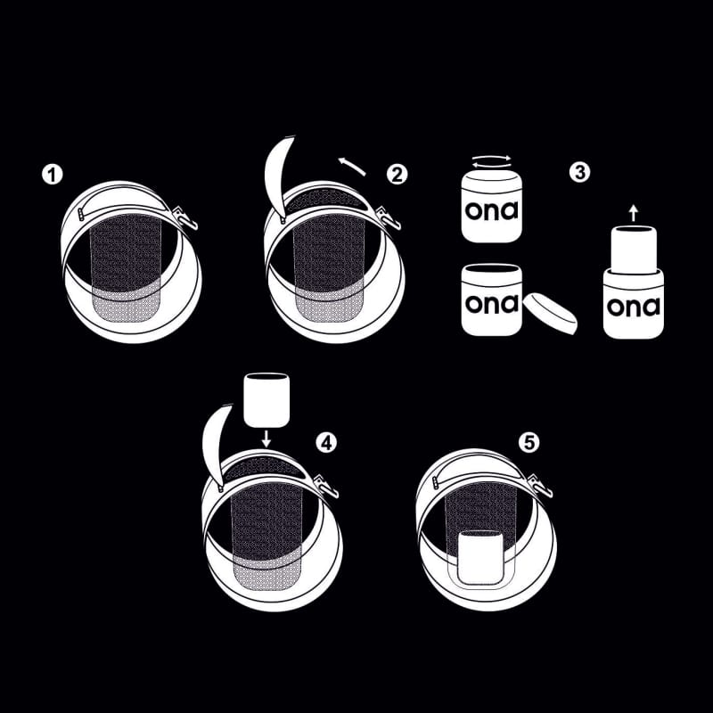 Abra los cierres de la tapa del ONA CONTROL DUCT, abra la tapa , introduzca la cantidad deseada de ONA BLOCK (1 o 2 unidades) y vuelva a cerrar para neutralizar los olores en su conducto. Una vez que los bloques de ONA se agoten simplemente reabra y reemplacelos.