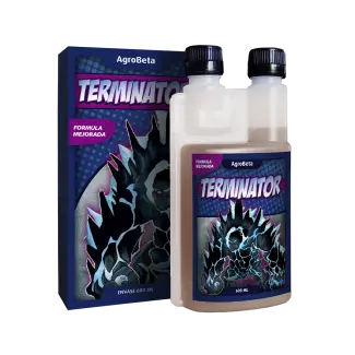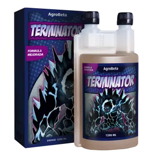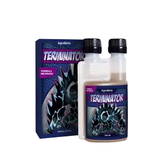 AGROBETA TERMINATOR, es un abono diseñado para su uso en las últimas semanas de floración. Esta formulado como un complemento, a base de vitaminas y diversos bioestimuladores, que favorecen una mejor fotosíntesis y por consiguiente, una mejor asimilación de nutrientes. Este producto compacta y endurece los cogollos además de adelantar la cosecha.